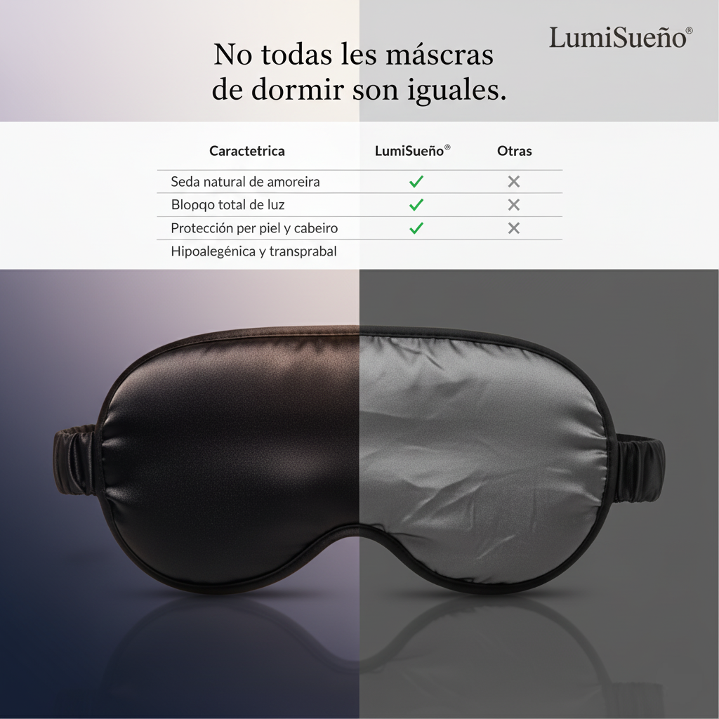 LumiSueño® bloquea el 100% de la luz, calma la mente y reduce los estímulos visuales que interrumpen el sueño.
